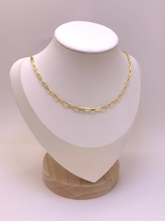 Paperclip Gold Chain Necklace Sterling Silver 925 18”