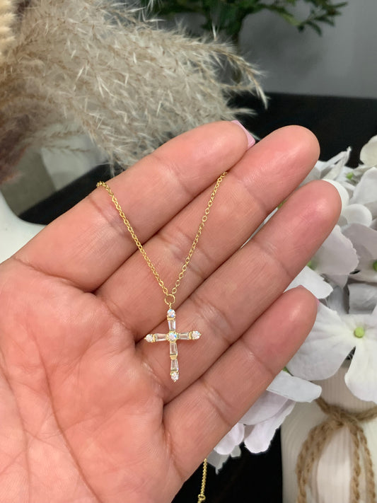 Gold Cross Necklace with CZ - Sterling Silver 925 -18 inch