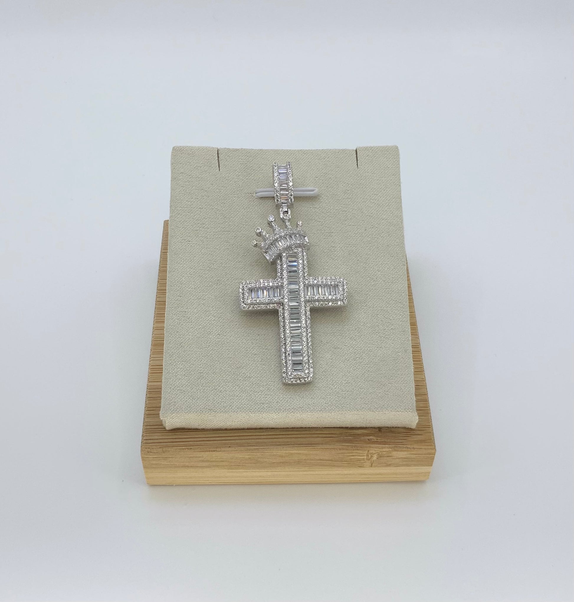 Cross with Crown Large -CZ Silver Silver 925 Pendant