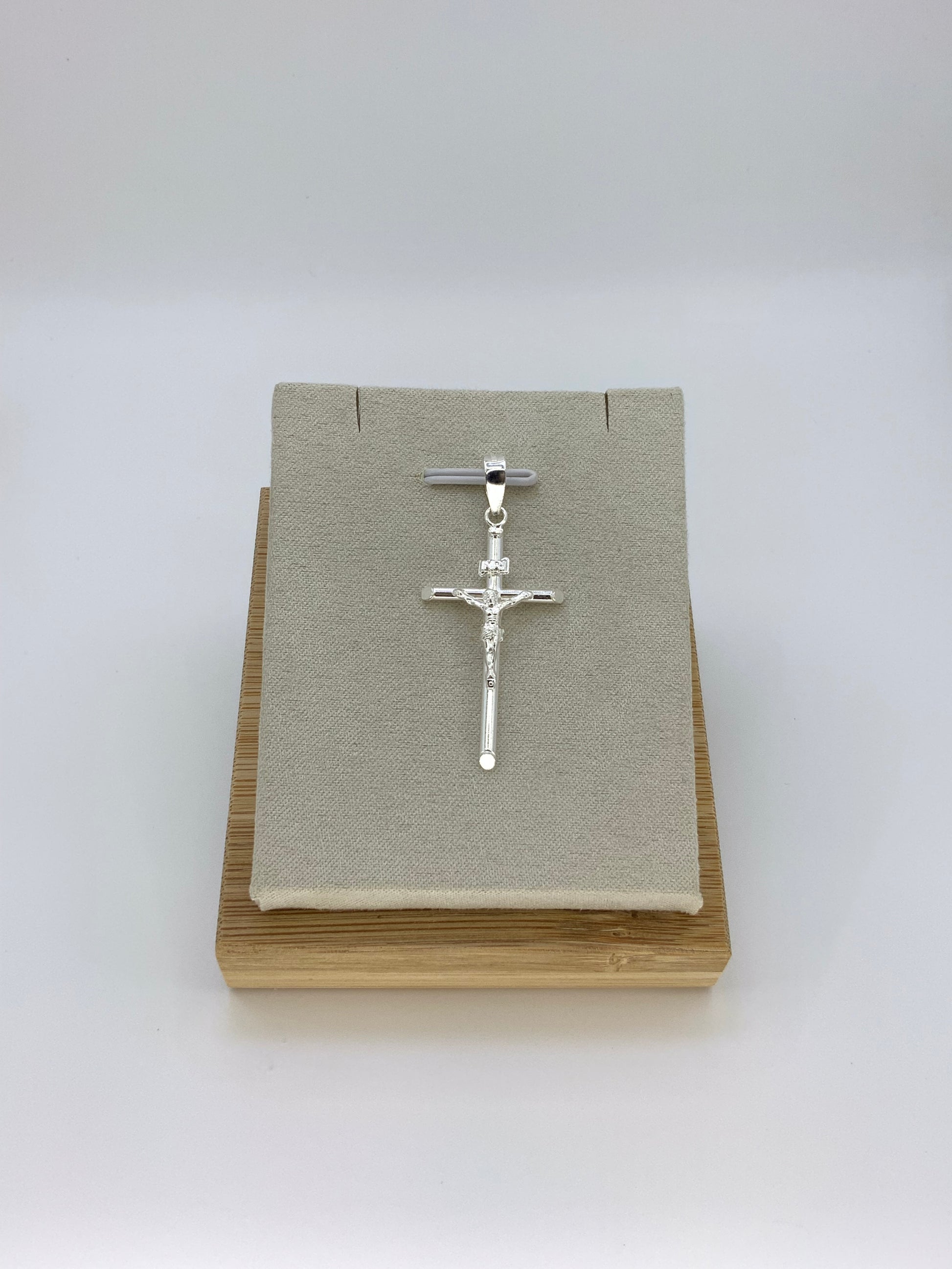 Elevate your style with our stunning Crucifix Pendant. Made from Sterling Silver 925, this 1.8' pendant features a beautiful cross design, symbolizing faith and protection. Perfect for everyday wear or special occasions. Show your devotion with this timeless piece.
