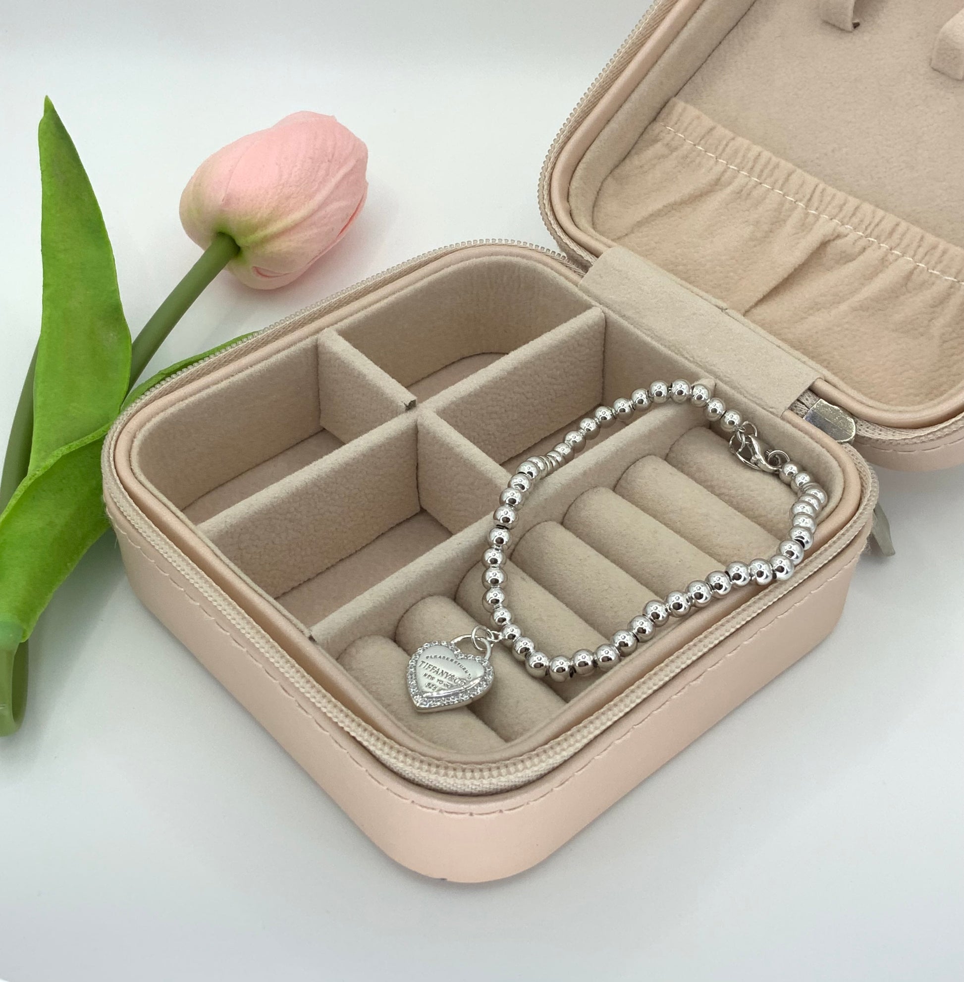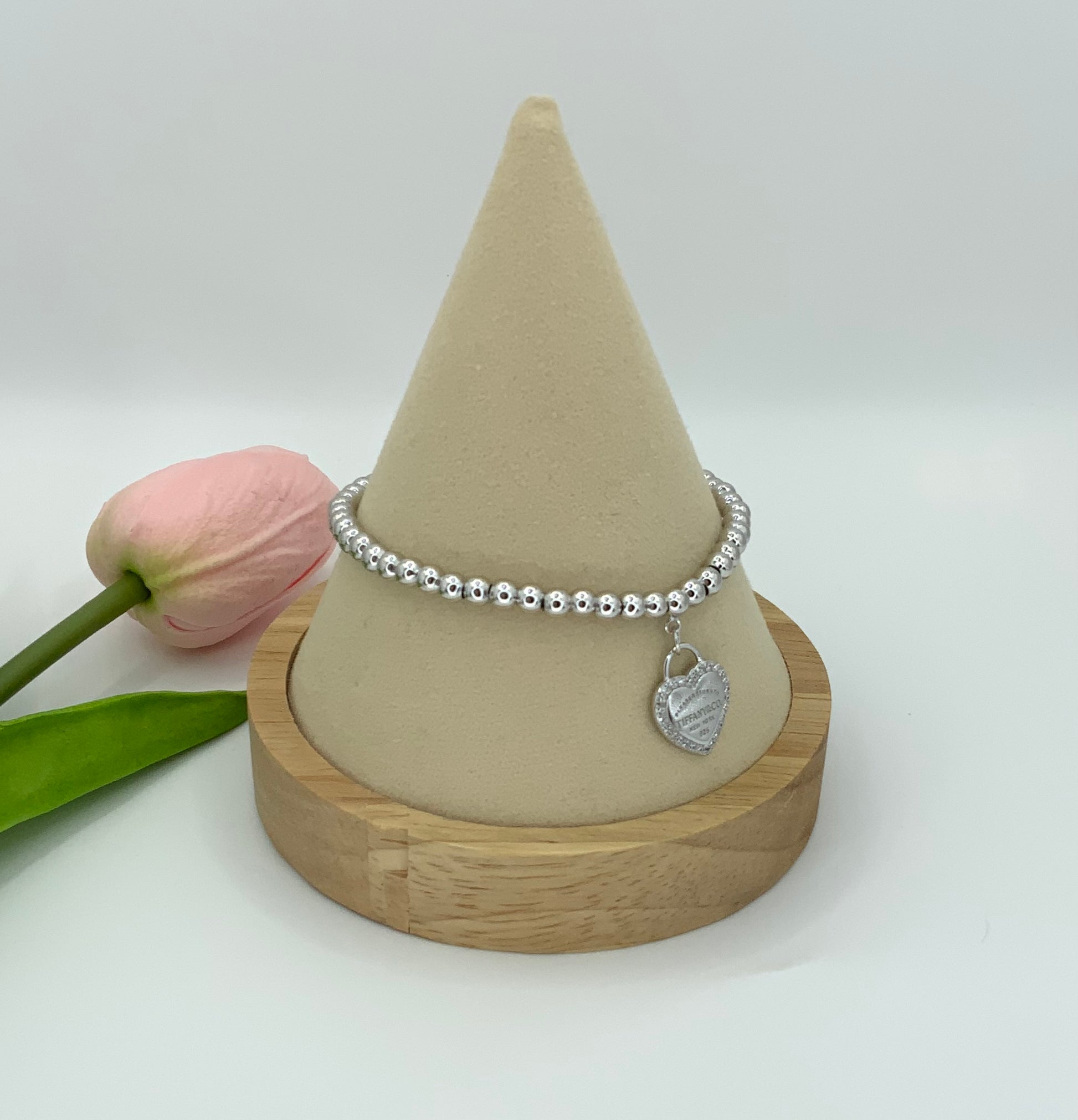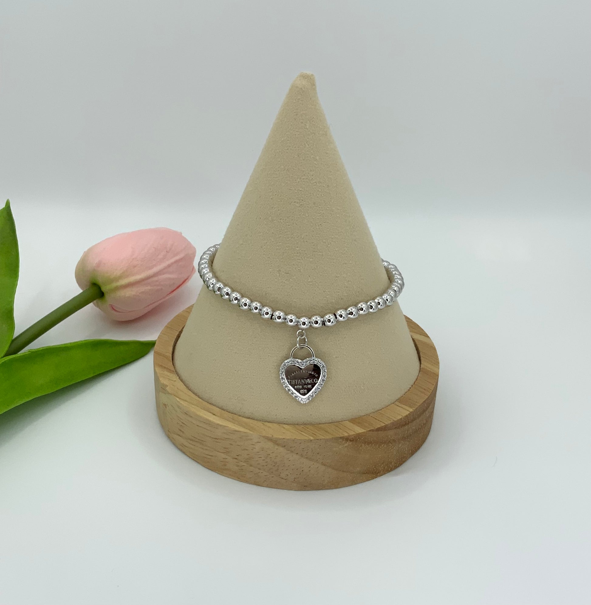 Expertly crafted with genuine sterling silver, this heart bracelet features delicate beads and sparkling cubic zirconia accents. Measuring at size 7.5 inches, it makes for a charming and elegant addition to any jewelry collection. A beautiful symbol of love, perfect for any occasion.