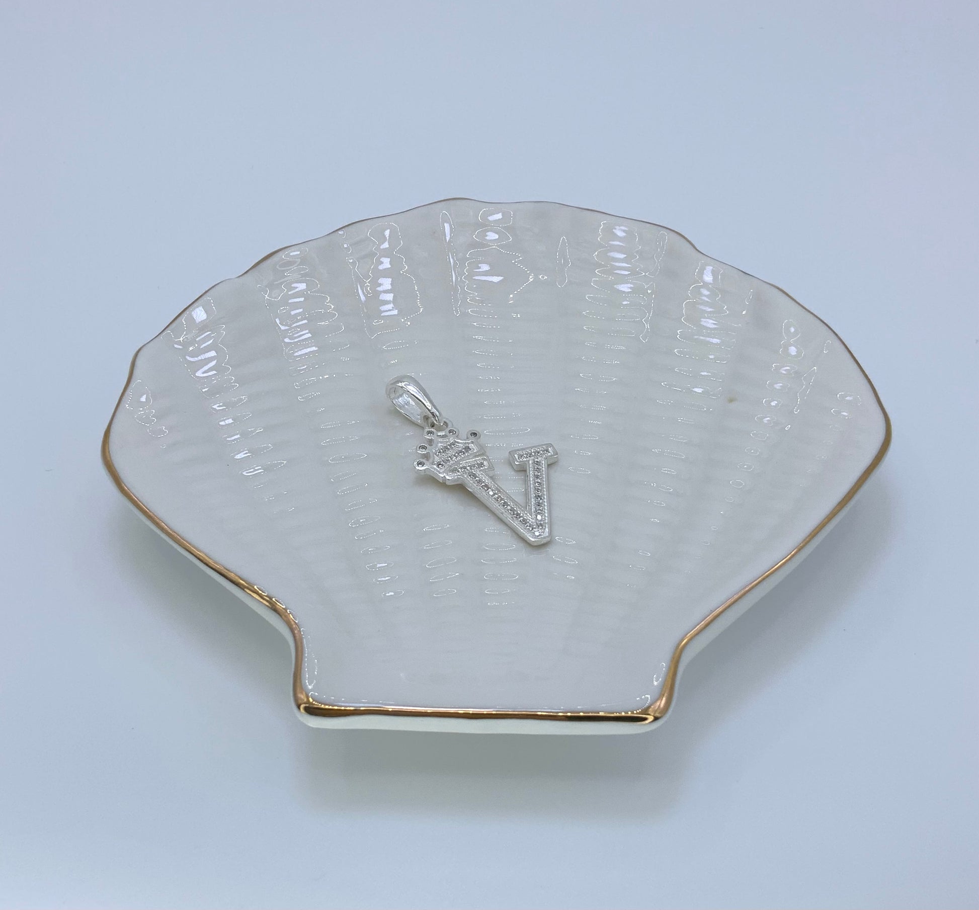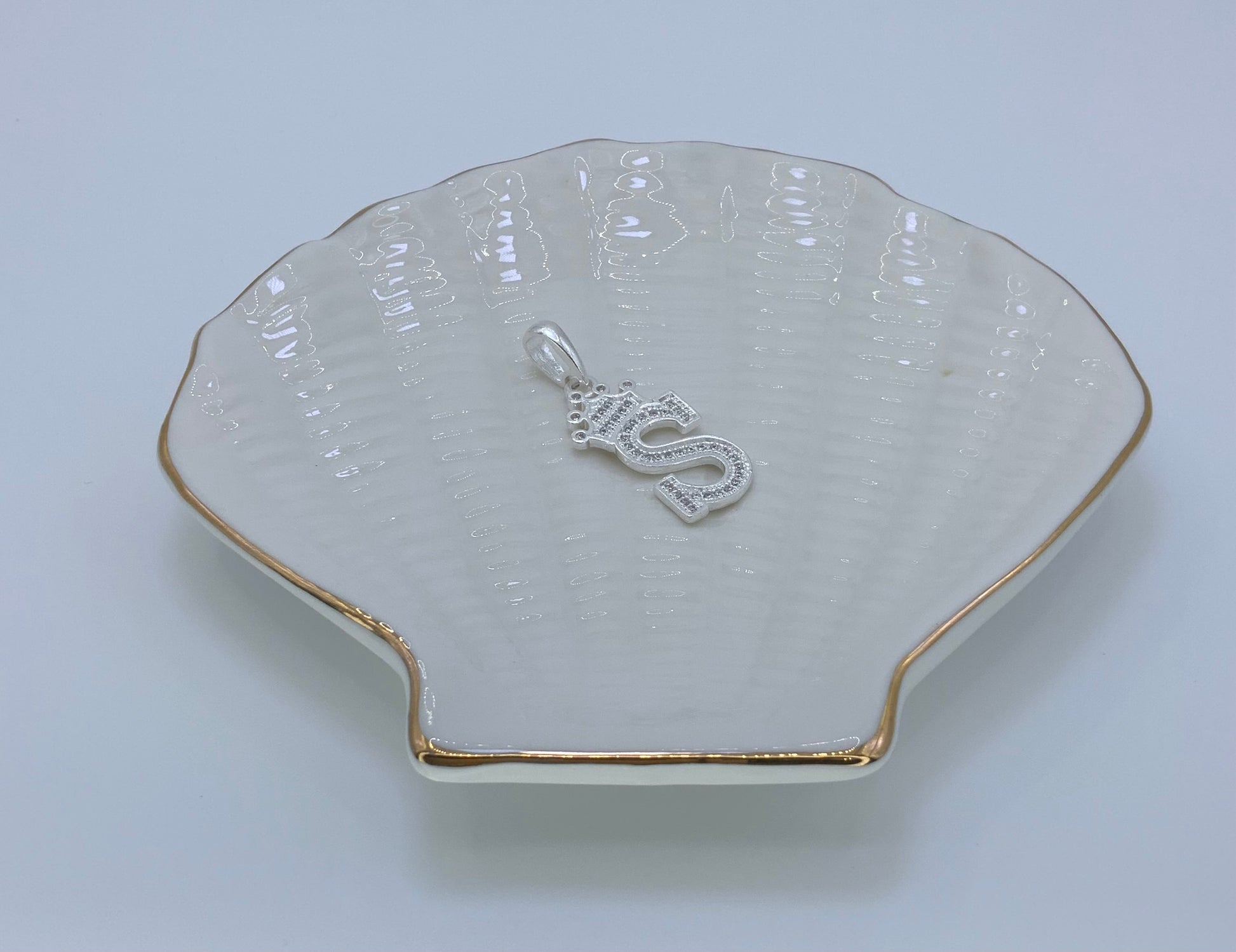 Initial with Crown Pendant CZ Sterling Silver 925