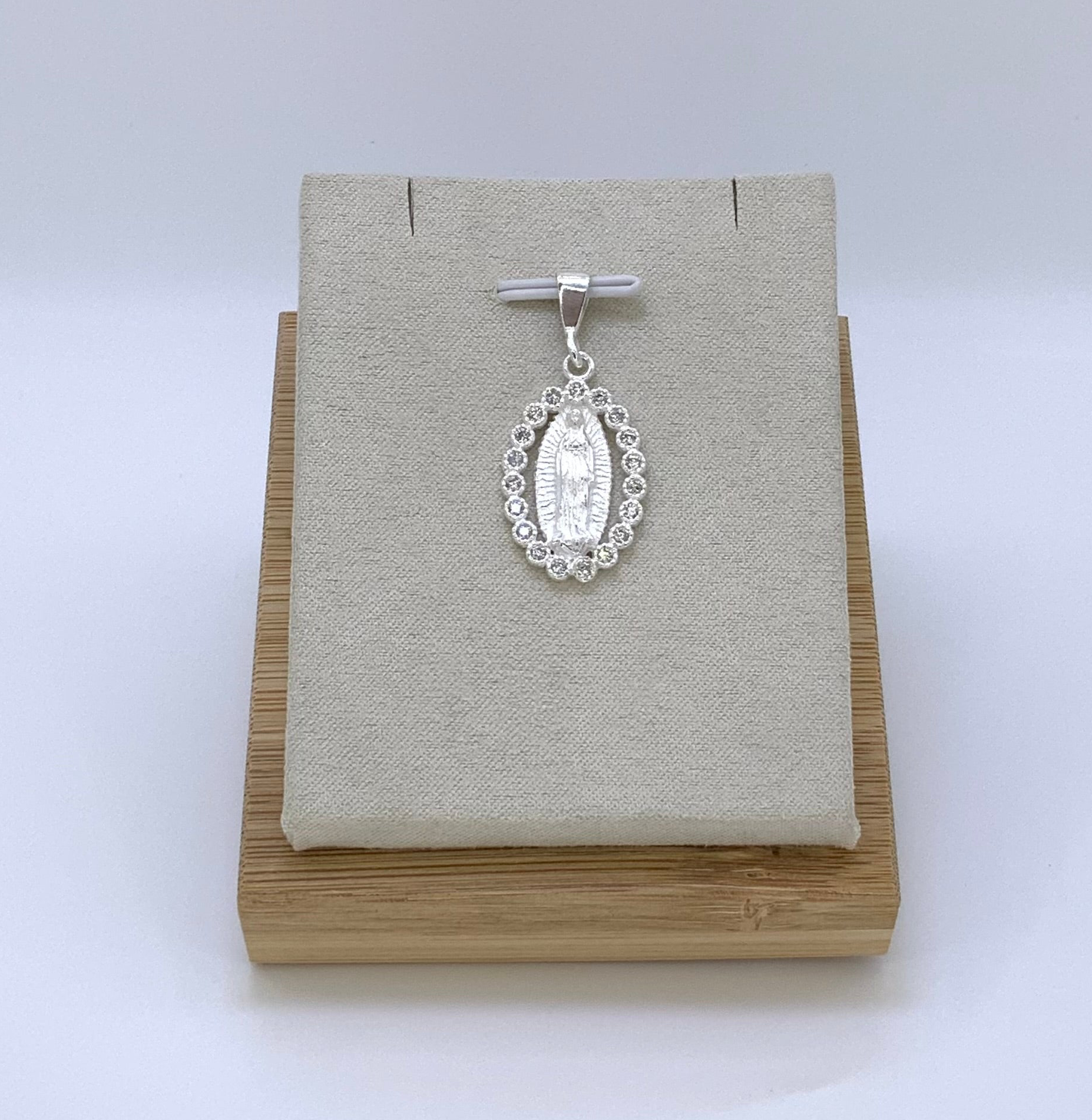 Discover the beauty and symbolism of Our Lady of Guadalupe with this stunning pendant, made of high quality Sterling Silver 925. Measuring 1.5 inches, it features sparkling zirconias. Add a touch of faith and elegance to any outfit with this finely crafted piece.