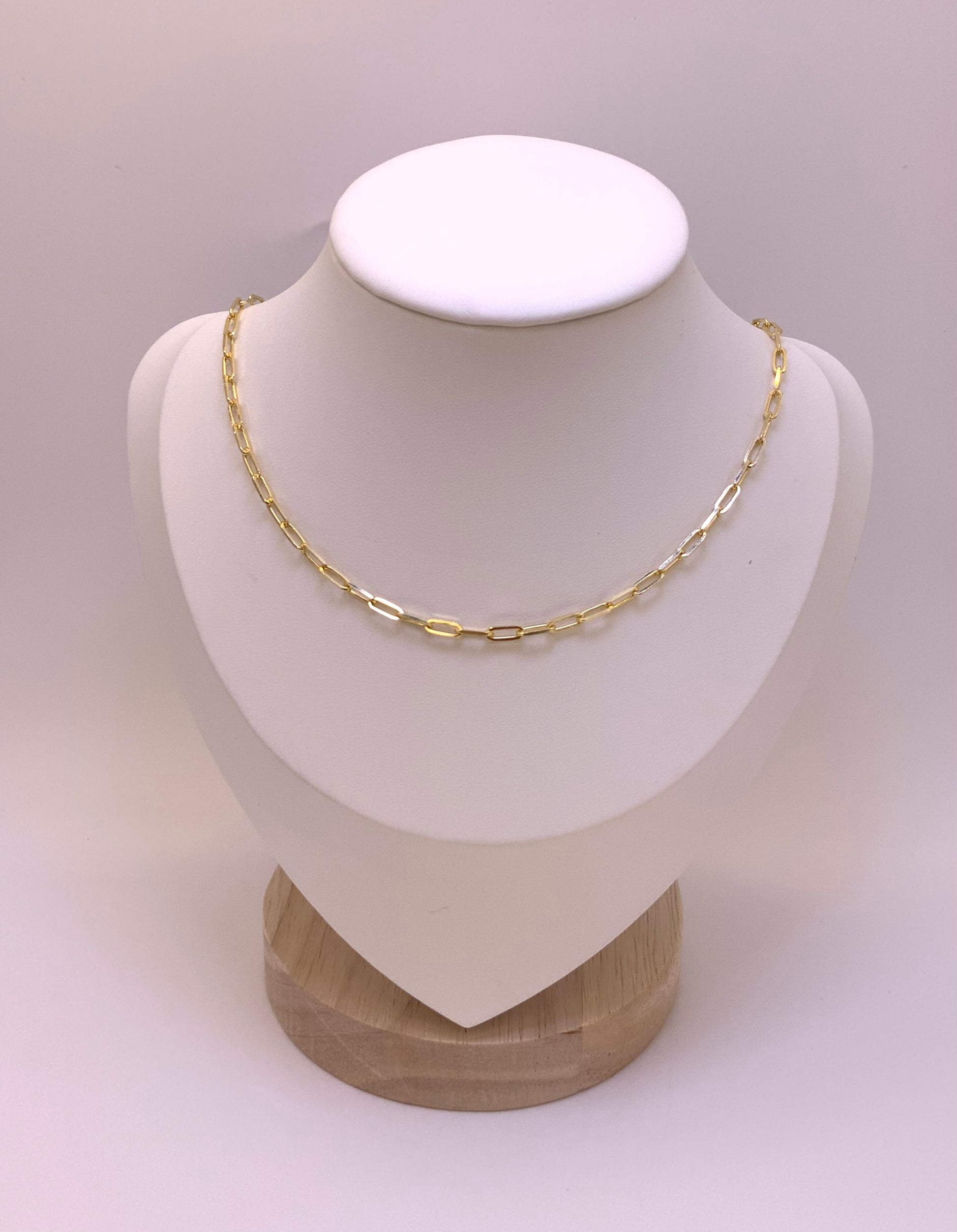 Paperclip Gold Chain Necklace Sterling Silver 925 18”