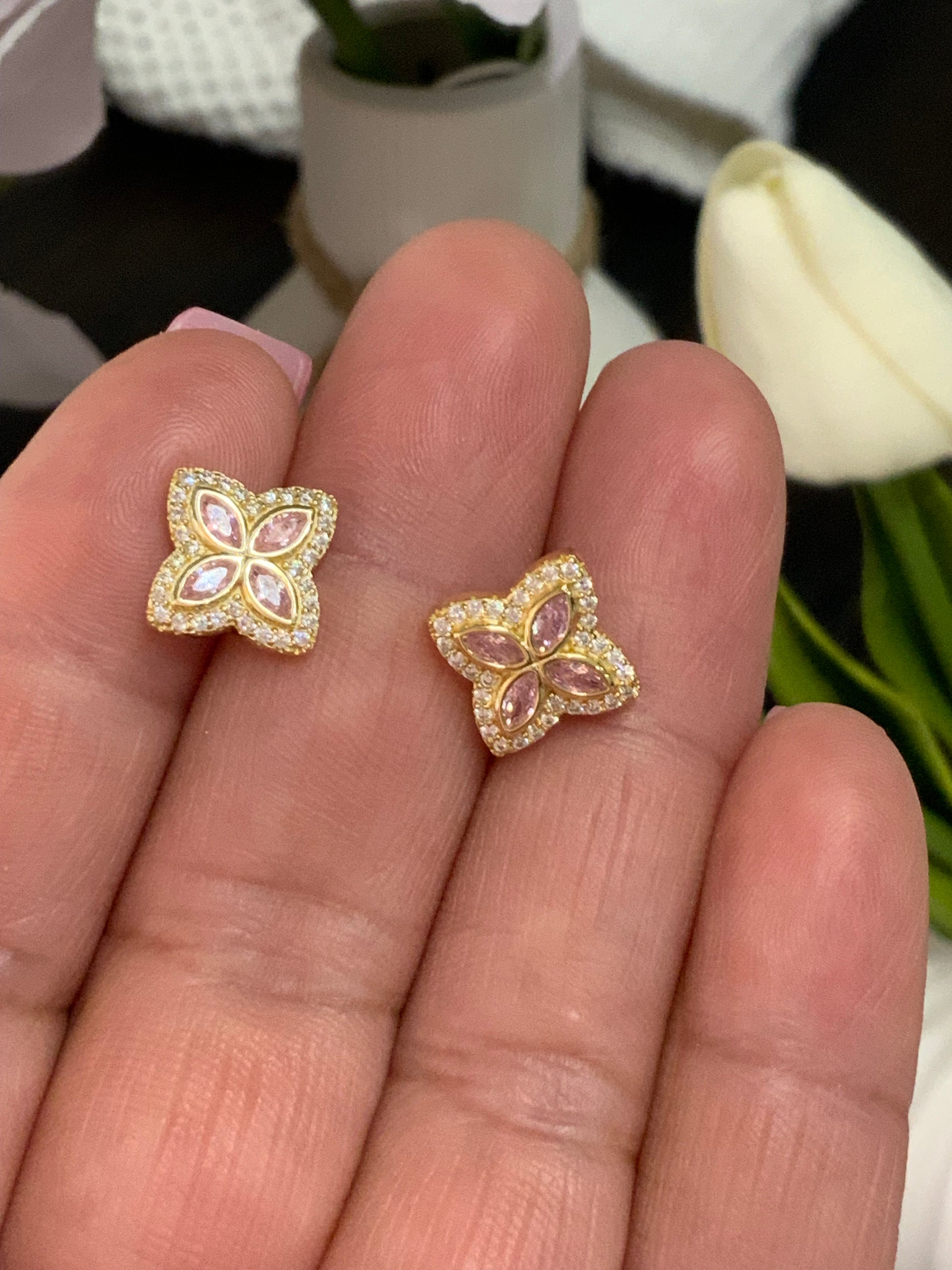 Add a touch of elegance and sparkle to your jewelry collection with our Pink Stud Earring CZ Sterling Silver 925 Gold - plated 14k. Made with high-quality CZ stones in pink and clear, these 13mm earrings are the perfect accessory for any occasion. Upgrade your look today.