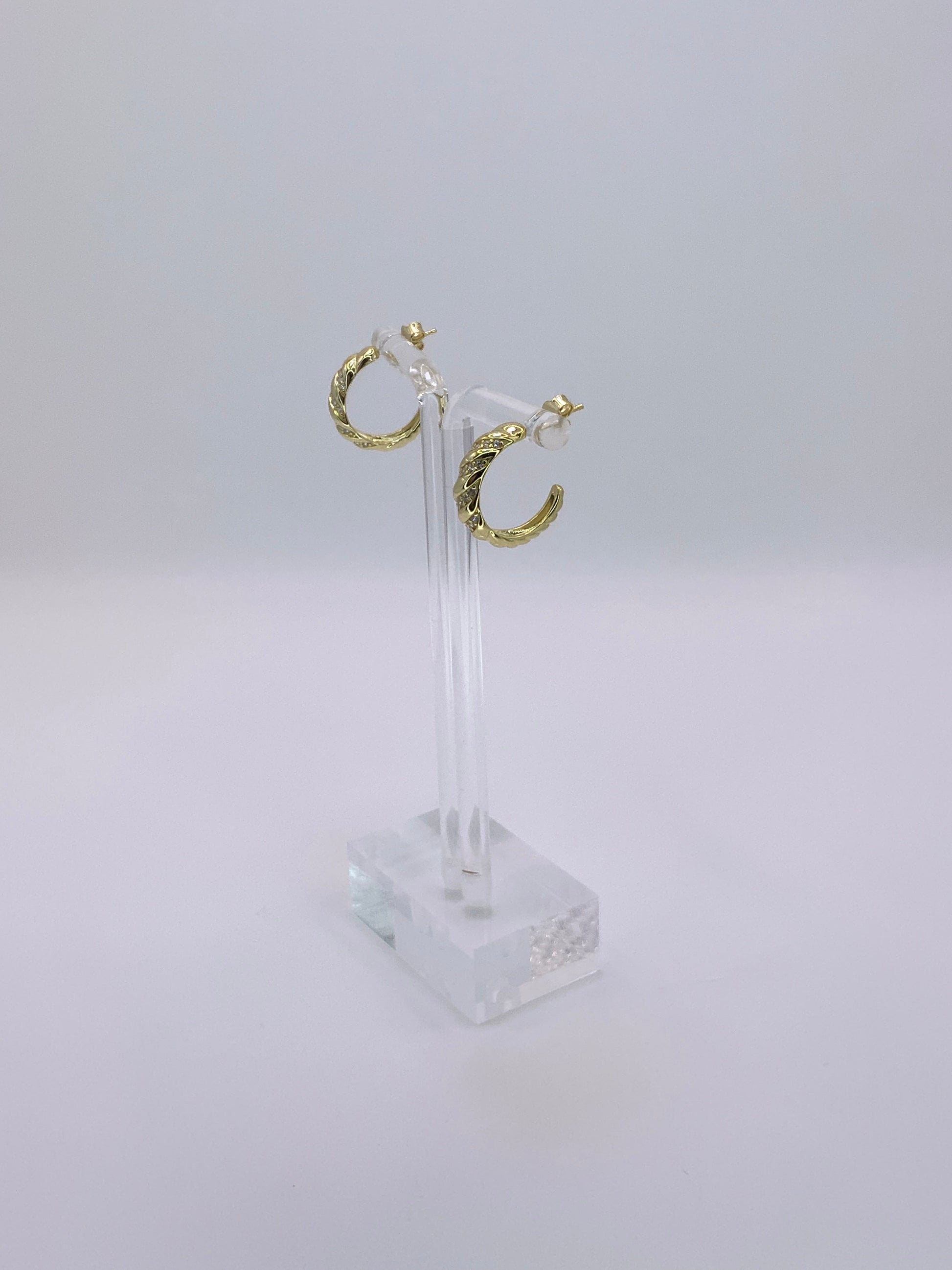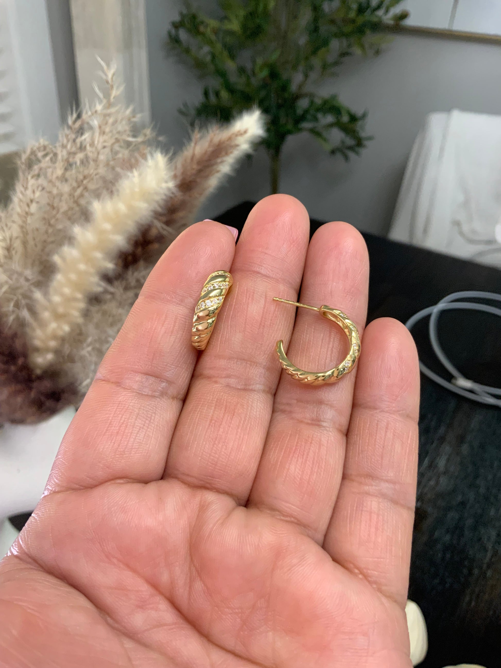 Expertly crafted from sterling silver and plated with 14k gold, these Roma Hoops Earrings are a must-have for any jewelry collection. Adorned with sparkling zirconias, these 17mm hoops add a touch of glamour and elegance to any outfit. Elevate your style with these high-quality, versatile earrings.