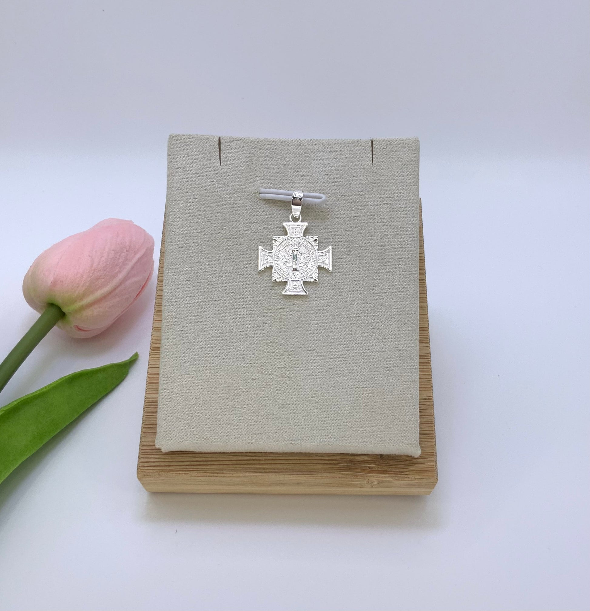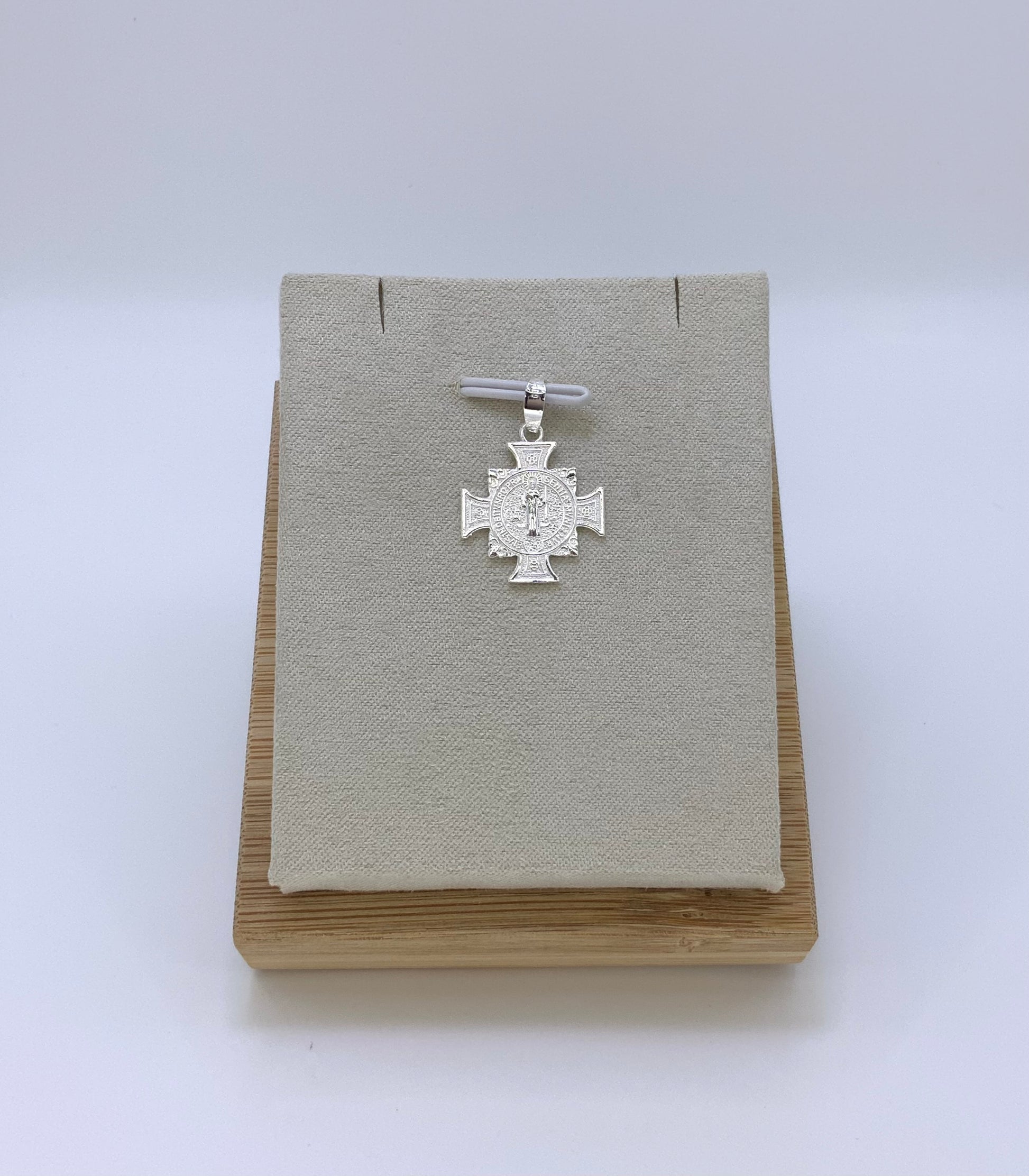 This Saint Benedict cross pendant, made of high-quality sterling silver 925, is a symbol of protection and faith. Crafted with precision, its 0.9 size makes it the perfect statement piece to add to any outfit. Embrace its powerful significance and showcase your devotion.