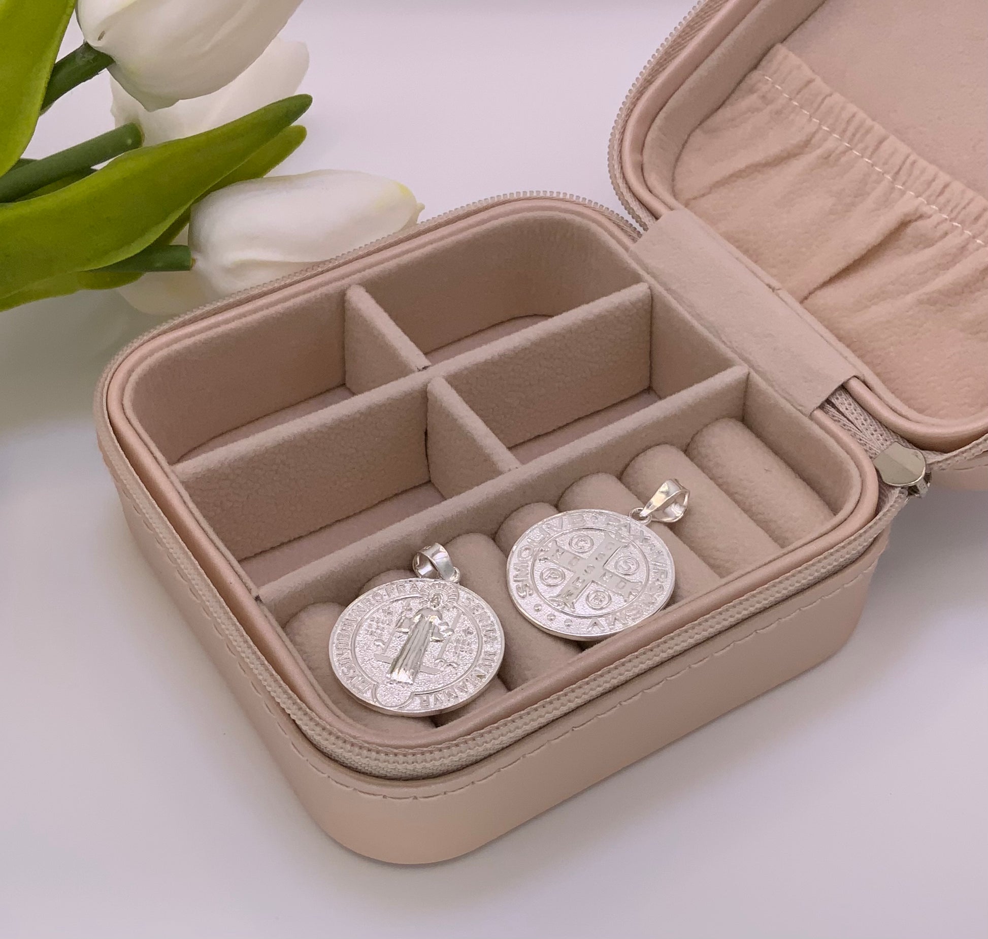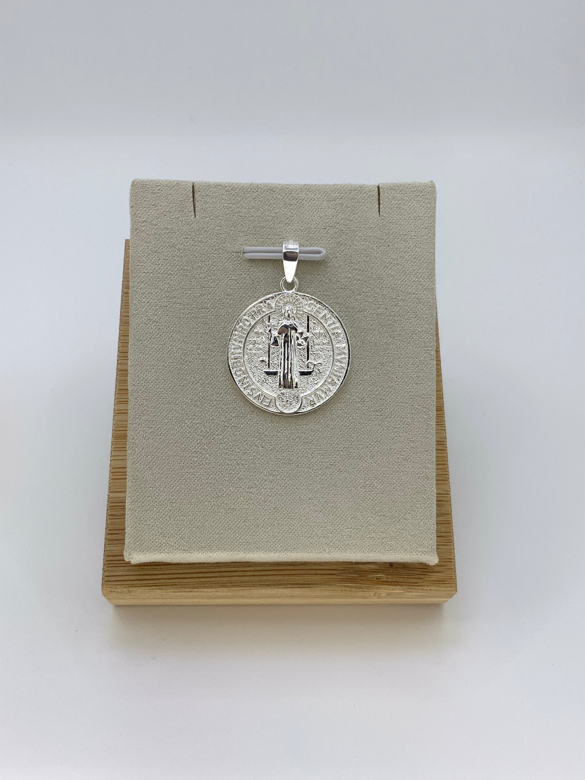 This Saint Benedict pendant, made of high-quality sterling silver (925), features a round shape and measures 1.1 inches. Its elegant design makes it a perfect accessory for any outfit, while its material ensures durability and longevity. Show your devotion and add a touch of sophistication to your style with this beautiful pendant.